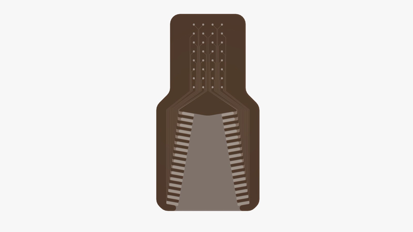 Built on a soft, conformable substrate, the interface minimizes tissue strain while maintaining stable contact with the cortical surface. The electrode layout provides uniform cortical coverage, while low-impedance electrode surfaces ensure stable, low-noise electrochemical performance during acute and extended recording sessions.